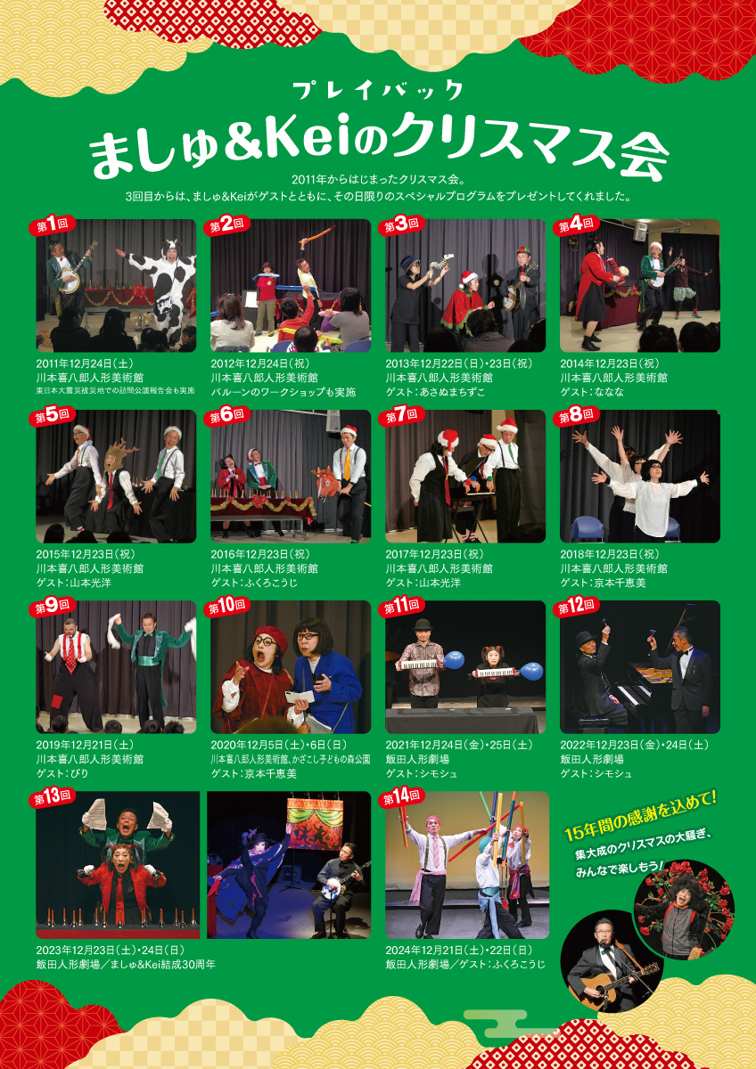 ましゅ15年続いた「クリスマス会公演」企画、いよいよ今年はラストイヤー。一日限りのスペシャルプログラムをみんなに観に来てほしいなぁ。